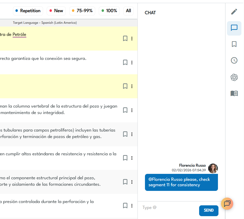 In parallel to flexible user management, some collaborative features to look for include file sharing, instant messaging, translation history, segment bookmarking with user permission controls.