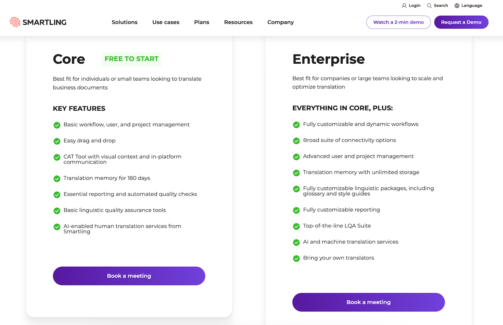 If you don’t have time to speak with a salesperson before learning the price, then you might need to search for alternatives to Smartling. You’ll need to invest time to book a call with them just to learn if Smartling is within your organization’s budget.