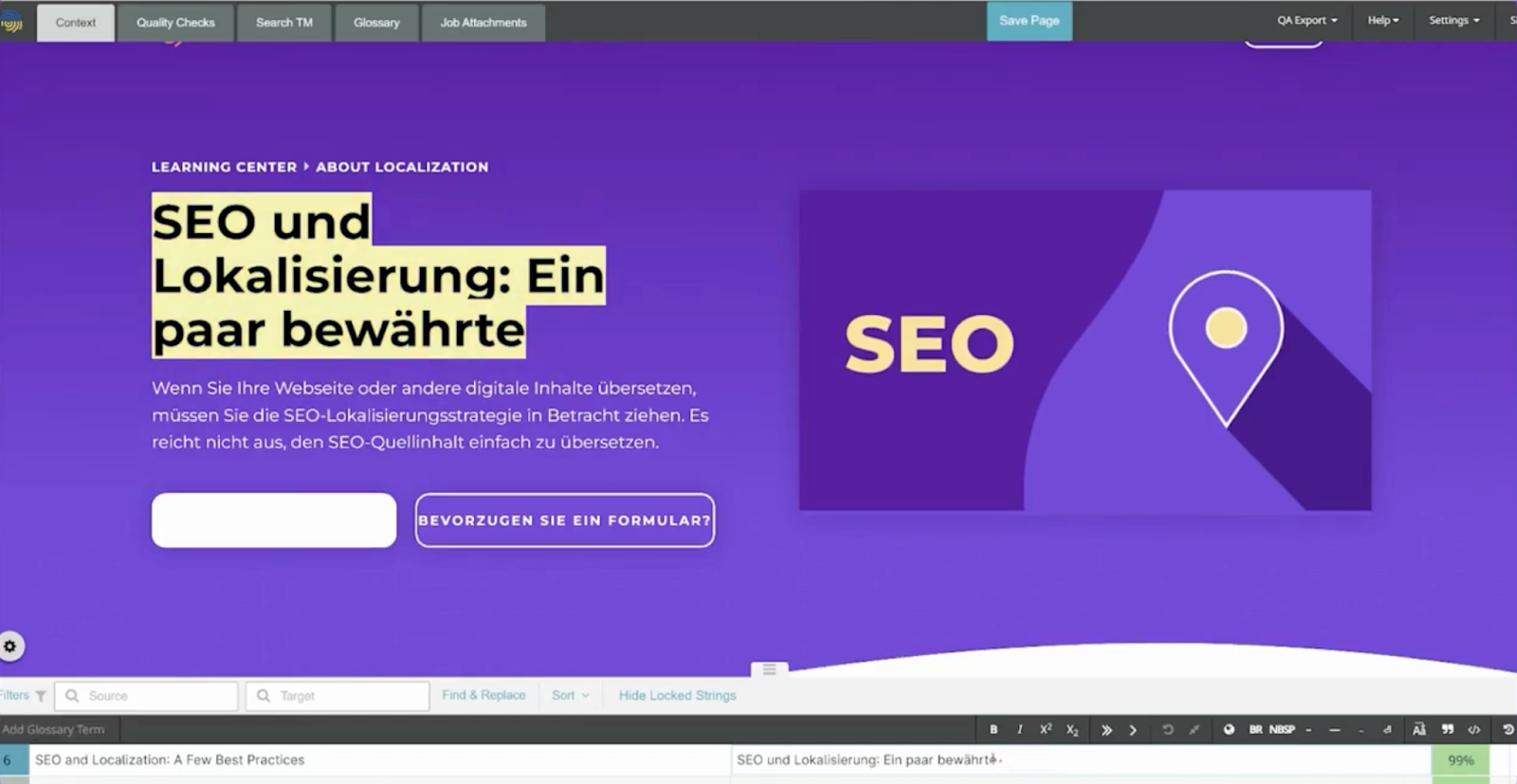 Some teams choose Smartling for Visual Context, which helps translators see how strings appear in the real UI while translating. Visual Context is displayed in Smartling’s CAT Tool, so translators can preview content in its layout (for example, on a web or app screen) as they work.